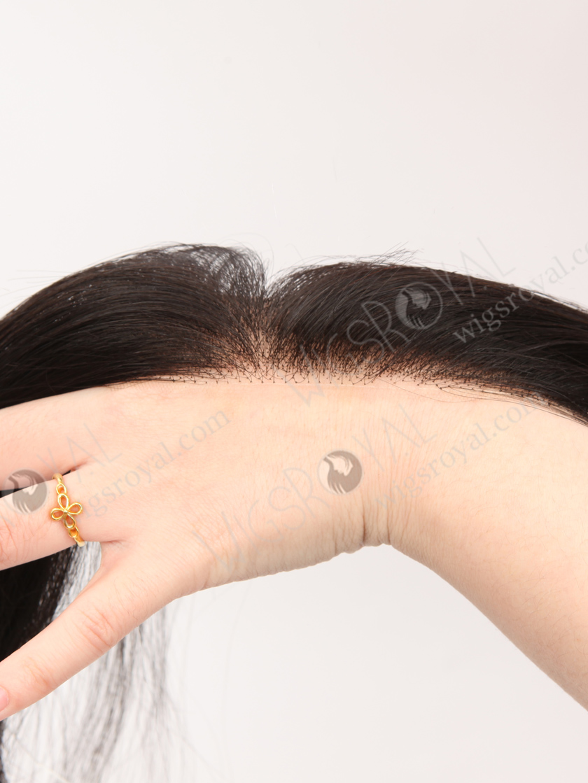 In Stock European Virgin Hair 16" Straight Natural Black Color Hairline Topper SHT-010