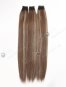 European Genius Weft Hair Extensions Thin Flat and Cuttable 18 Inch Rooted Brown with Blonde Highlights SGW-08015