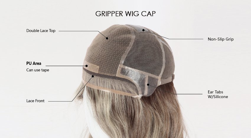 Unlike traditional wigs that rely on combs, clips, or adhesive tapes to stay in place, a Gripper wig utilizes a specialized, soft silicone lining sewn into the cap. This silicone "grip" creates friction against the scalp, holding the wig securely without the need for glue or tape.